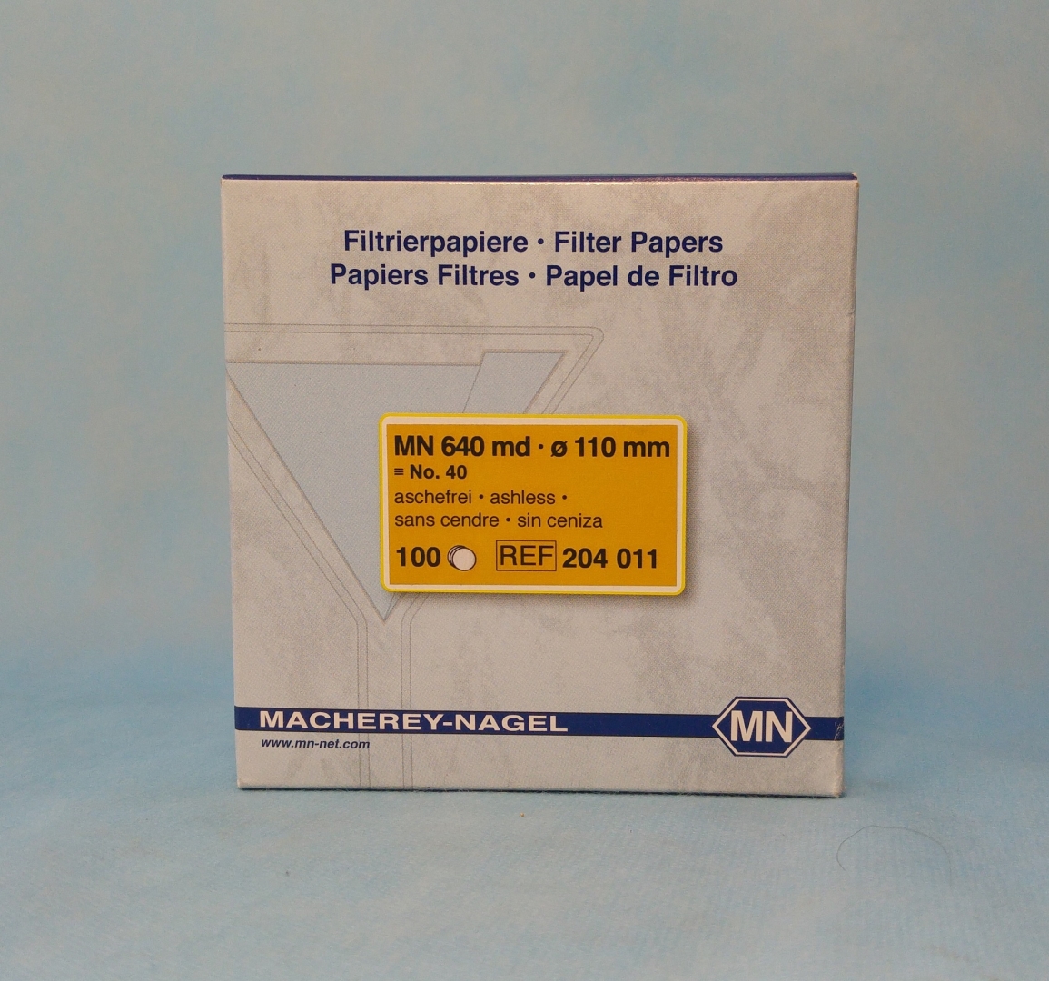 נייר סינון - מס.40 קוטר 9.0 ס"מ Medium/slow filtration י 8 מיקרון Ashless,קופ.100 יח. MN 640 md
