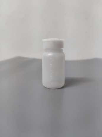 בקבוק פלסטיק פוליאתילן עגול מכוייל 50 מ"ל פיה 24 מ"מ + מכסה כפול