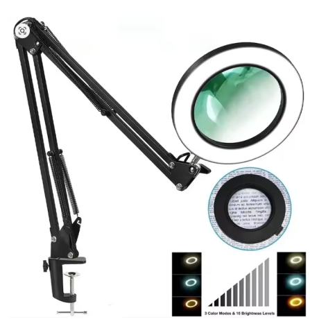 זכוכית מגדלת שולחנית הגדלה X8 , תאורת LED + זרוע
