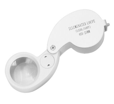 זכוכית מגדלת 40X, קוטר 25 מ"מ - לופה מתקפלת, תאורת לד