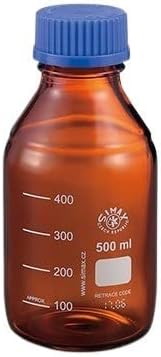 בקבוק מעבדה זכוכית חום עם פקק הברגה צ'כיה