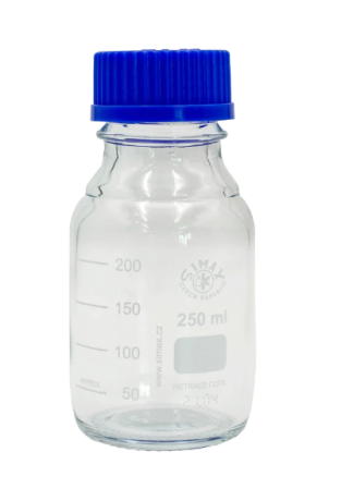 בקבוק מעבדה זכוכית עם פקק הברגה צ'כיה