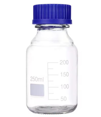 בקבוק מעבדה זכוכית שקוף עם פקק הברגה סיני