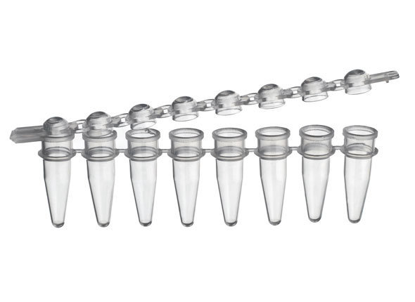 מבחנות אפנדורף PCR י 0.2 מ"ל + פקק שטוח מחובר / בשרשרת 125X8 יח. קרטון / 1000 יח.