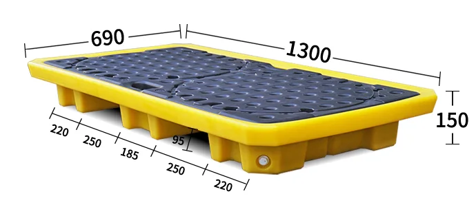 מאצרה ל - 2 חביות בעמידה 130X69X15 ס"מ, ניקוז, כניסה למלגזה ועגלת משטחים SCP-B2-70