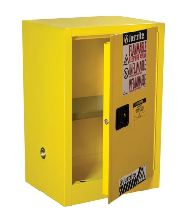 ארון אחסון כימיקלים דליקים צהוב, 3 מדפים ,דלת אחת Justrite
