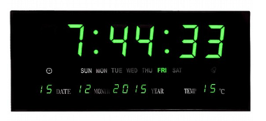 שעון קיר דיגיטלי, תאורת לד אדומה, תאריך, שעה וטמפרטורה 31x19 ס"מ