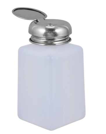 בקבוק " אנטי סטטי " פלסטיק 200 מ"ל גוון לבן - עם פקק לחיצה מנירוסטה