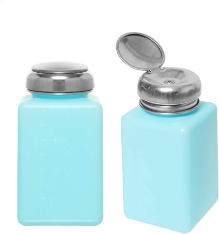בקבוק " אנטי סטטי " פלסטיק 200 מ"ל גוון תכלת - עם פקק לחיצה מנירוסטה