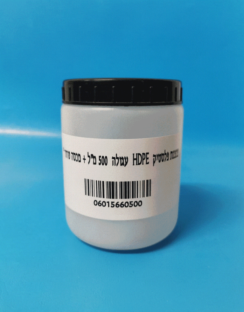 צנצנת פלסטיק HDPE עגולה 2000 מ"ל + מכסה שחור